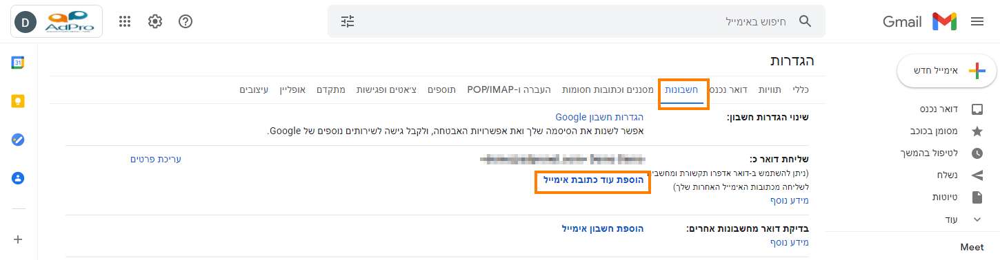 הוסף את חשבון הדואר האלקטרוני לממשק Gmail